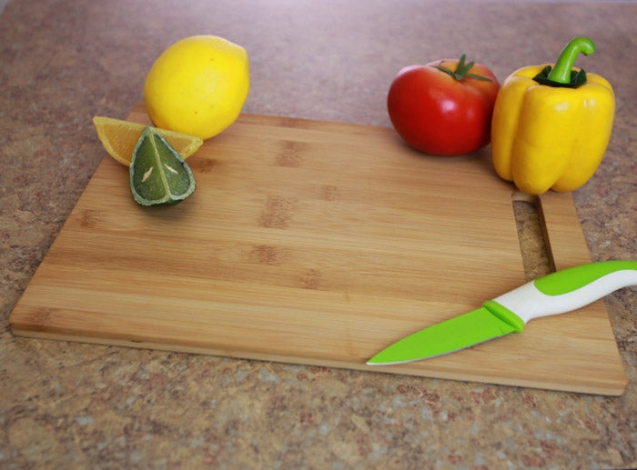Bamboo Cutting Boards are a great Eco-friendly option that are ideal for cutting fruits, vegetables, garnishes, and more! Bamboo wood is intended to withstand years of knife use and can last quite some time with proper upkeep. Purchase individually or as a set.