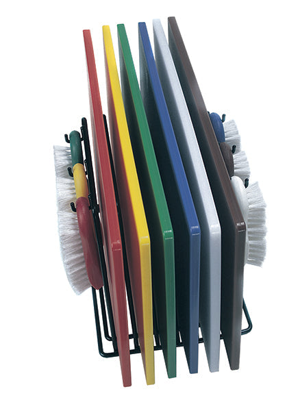 This thick wireframe Cutting Board keeps your kitchen organized and clean. This heavy duty unit holds six of our color-coded cutting boards and matching brushes. Cutting boards and brushes sold separately.