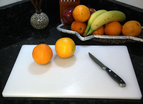 These color coded boards are made of professional grade material designed for sanitation and for keeping knives sharp. Their surfaces are non-porous to avoid stains and absorption of contaminants, and all are dishwasher safe. 1/2 inch thick! They come in several sizes in packs of six colors as well as single white boards. Made for the professional chef, but also ideal in home kitchens.